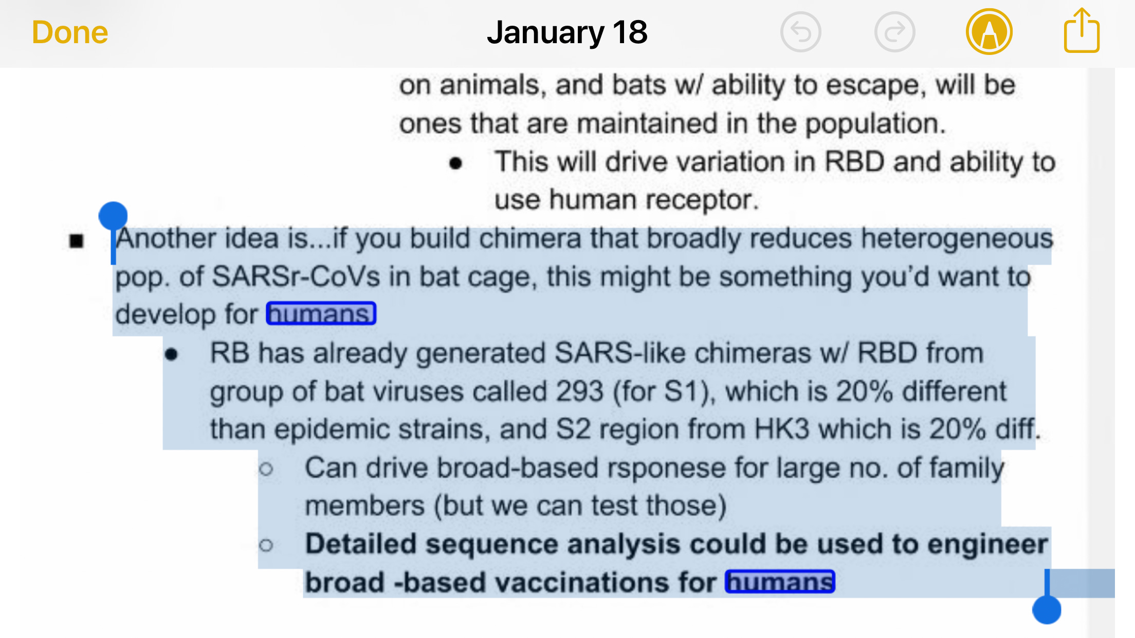 So basically DEFUSE likely led someone to decide to transition from vaccinating bats to vaccinating humans. This leads to the next question. What is the best vaccine and what is the most affordable way to vaccinate the human population to any emerging Sars like Coronavirus?