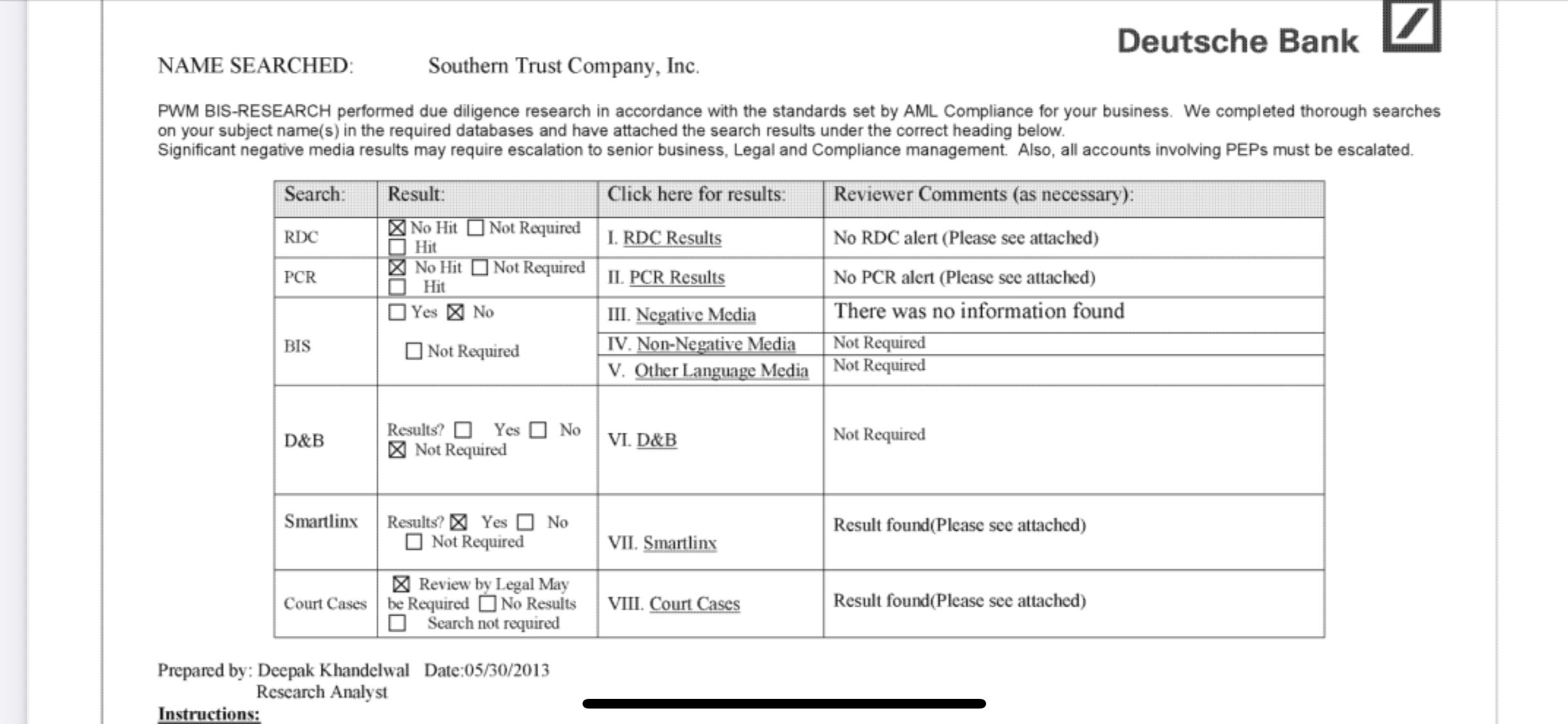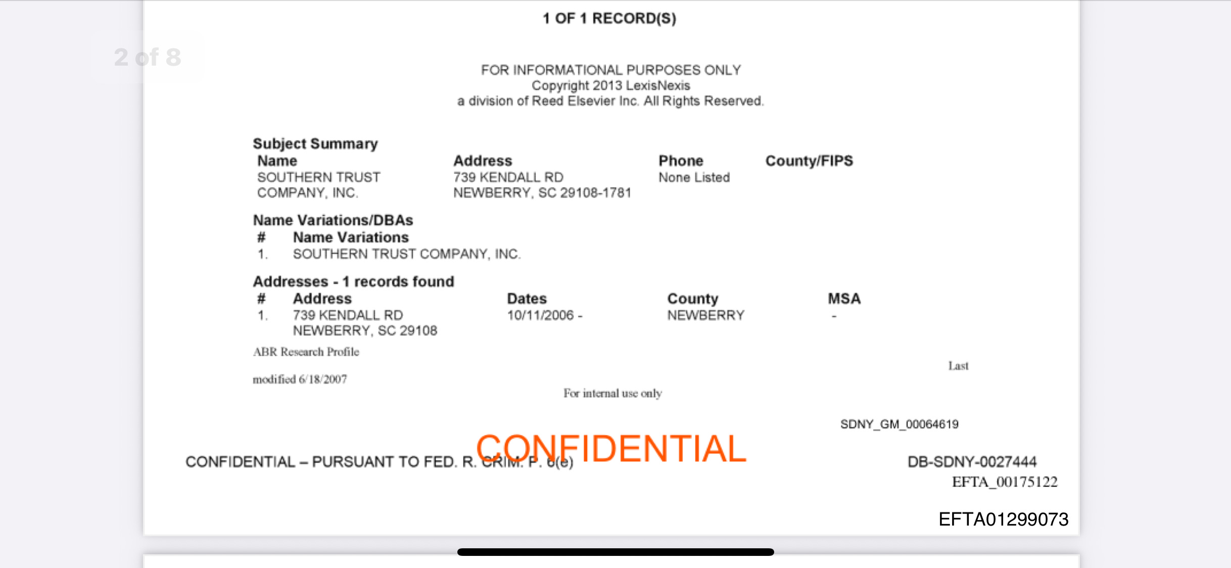 There was a Southern Trust that showed up in the Epstein Files that showed up in a 2013,Deutsche Bank due diligence search showing a Southern Trust established in 1984 in Southern Carolina