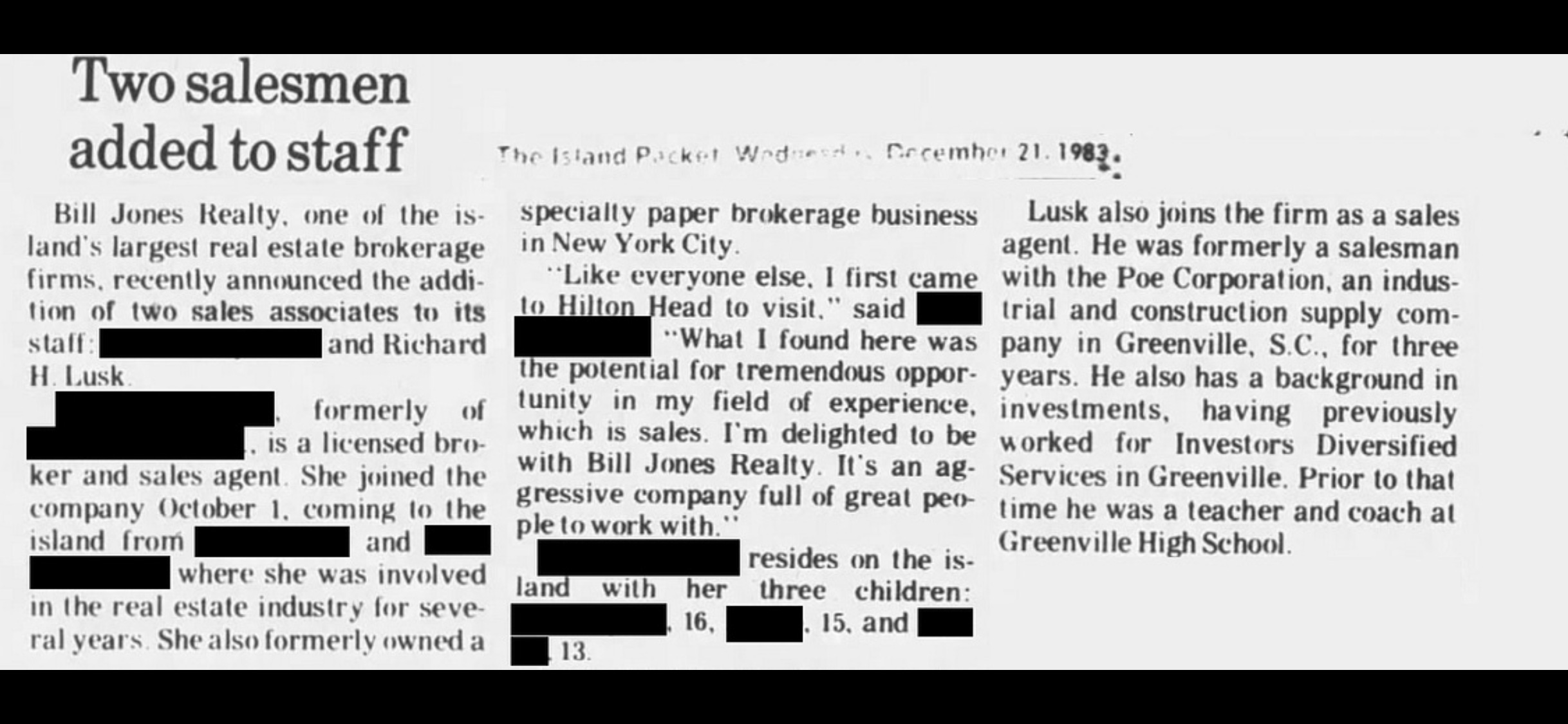 Her mother was hired by Bill Jones Realty in 1983. So what was she doing from 1981-1983?