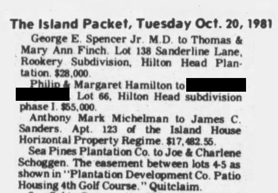 Ellie shows that Jane Doe 4’s mother buys a house in October 1981 in Hilton Head for $55,000. That was not very expensive (20% below median) but mortgage rates were very high (18%) . Hopefully she paid cash. In any event it sounds like a place they would have moved into ASAP consistent with her moving during the school year
