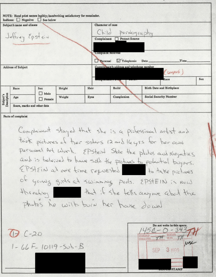 Maria Farmer FBI Complaint , Trumps Photo