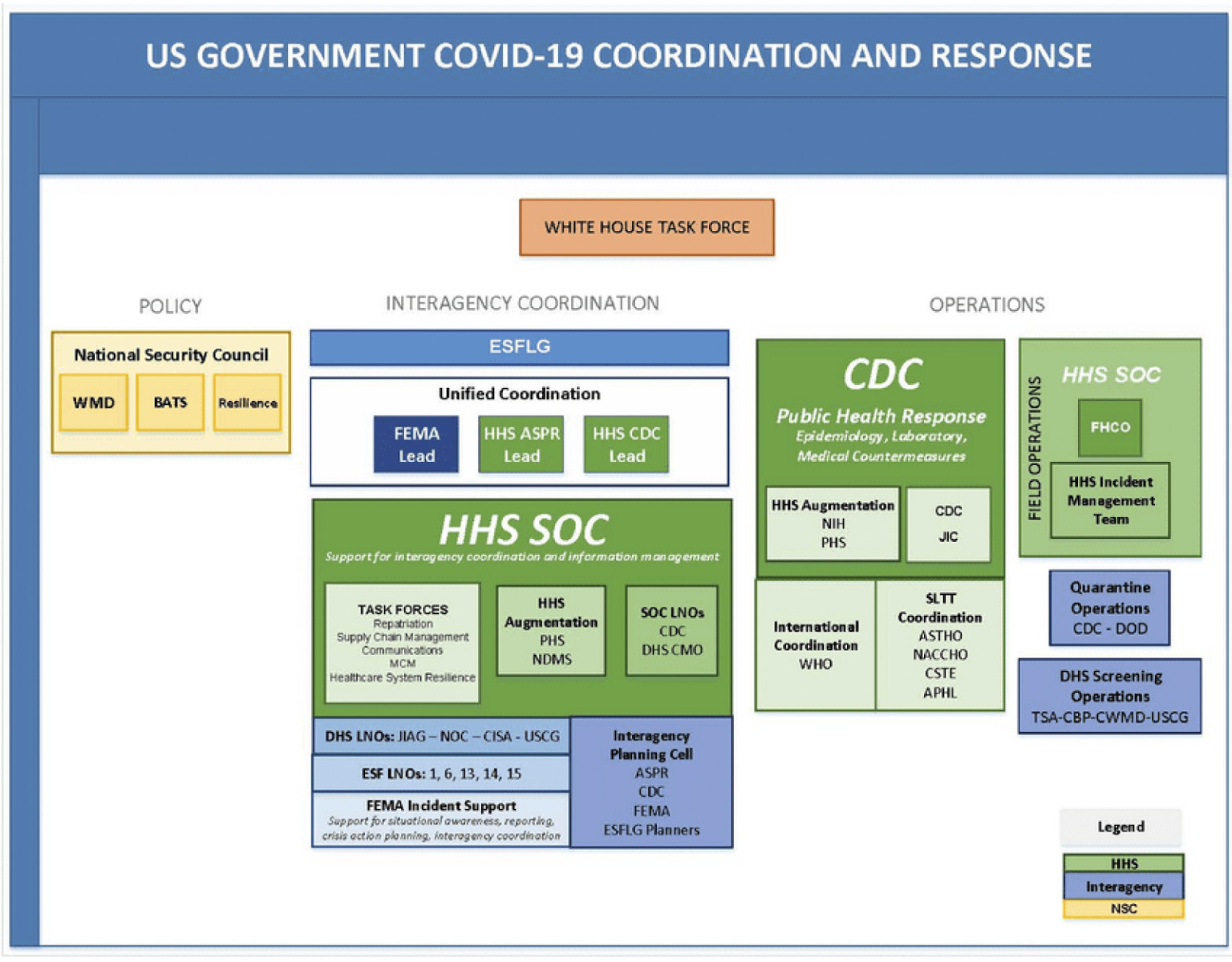 March 13, 2020 the National Security Council (NSC) was officially in charge of the US government’s Covid policy.