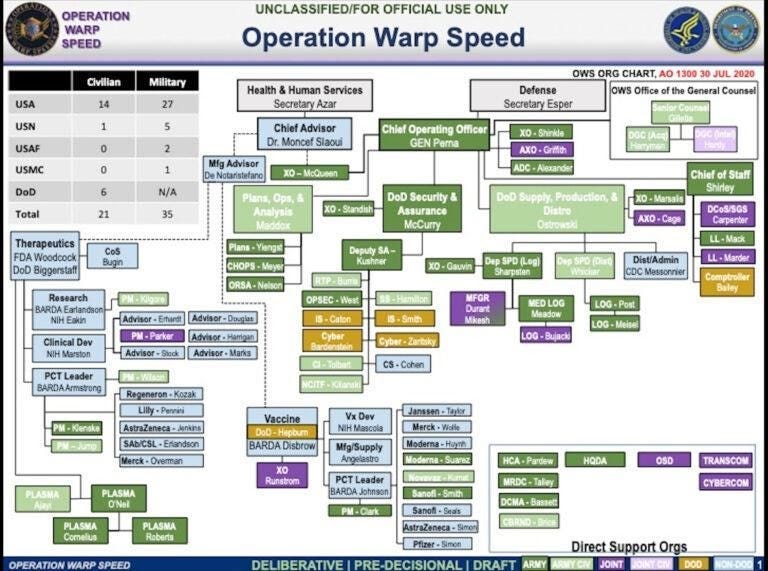 Within the framework of OWS, the DoD and HHS are assisting Big Pharma in fast-tracking their vaccine development, manufacturing, and distribution