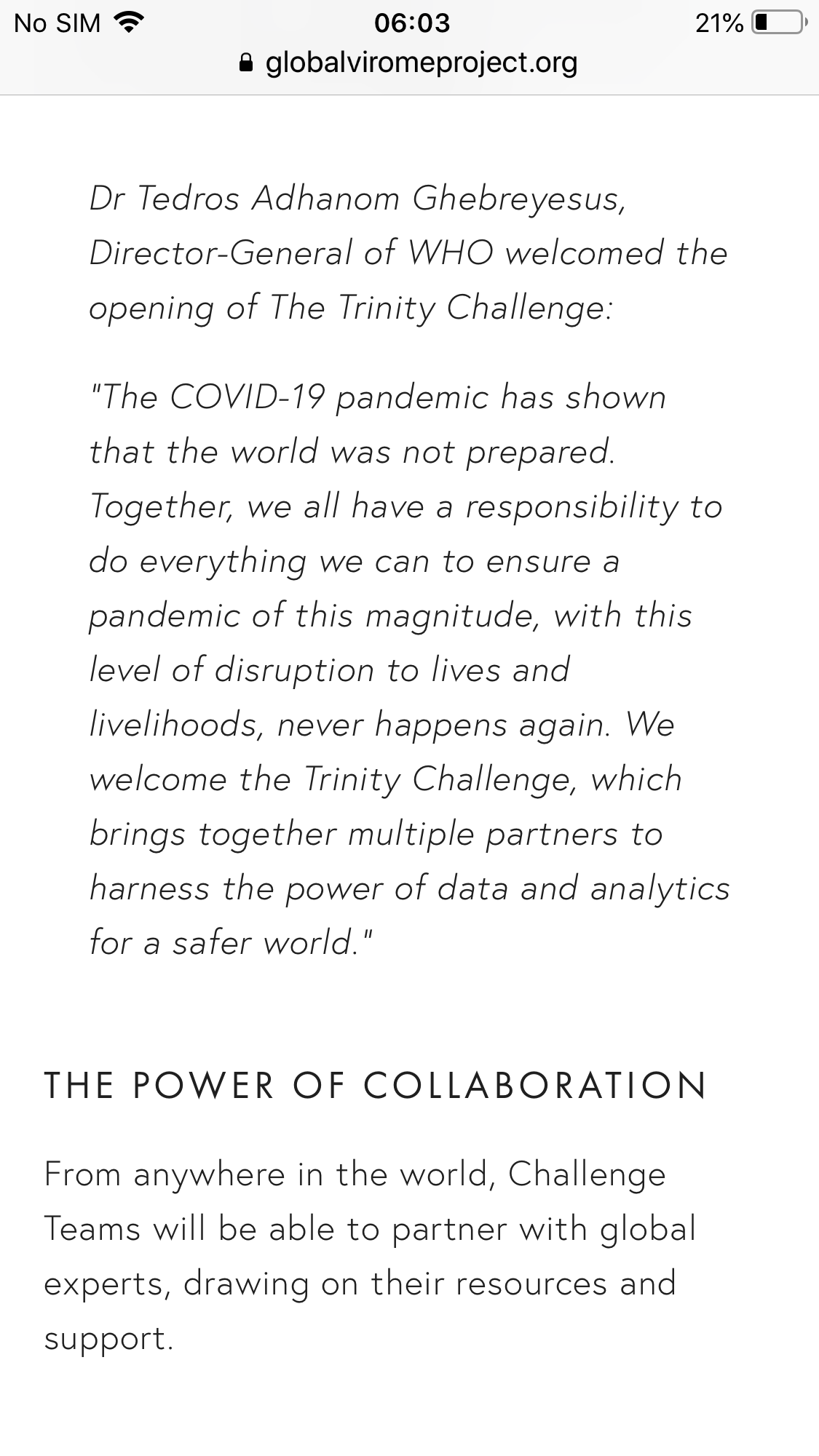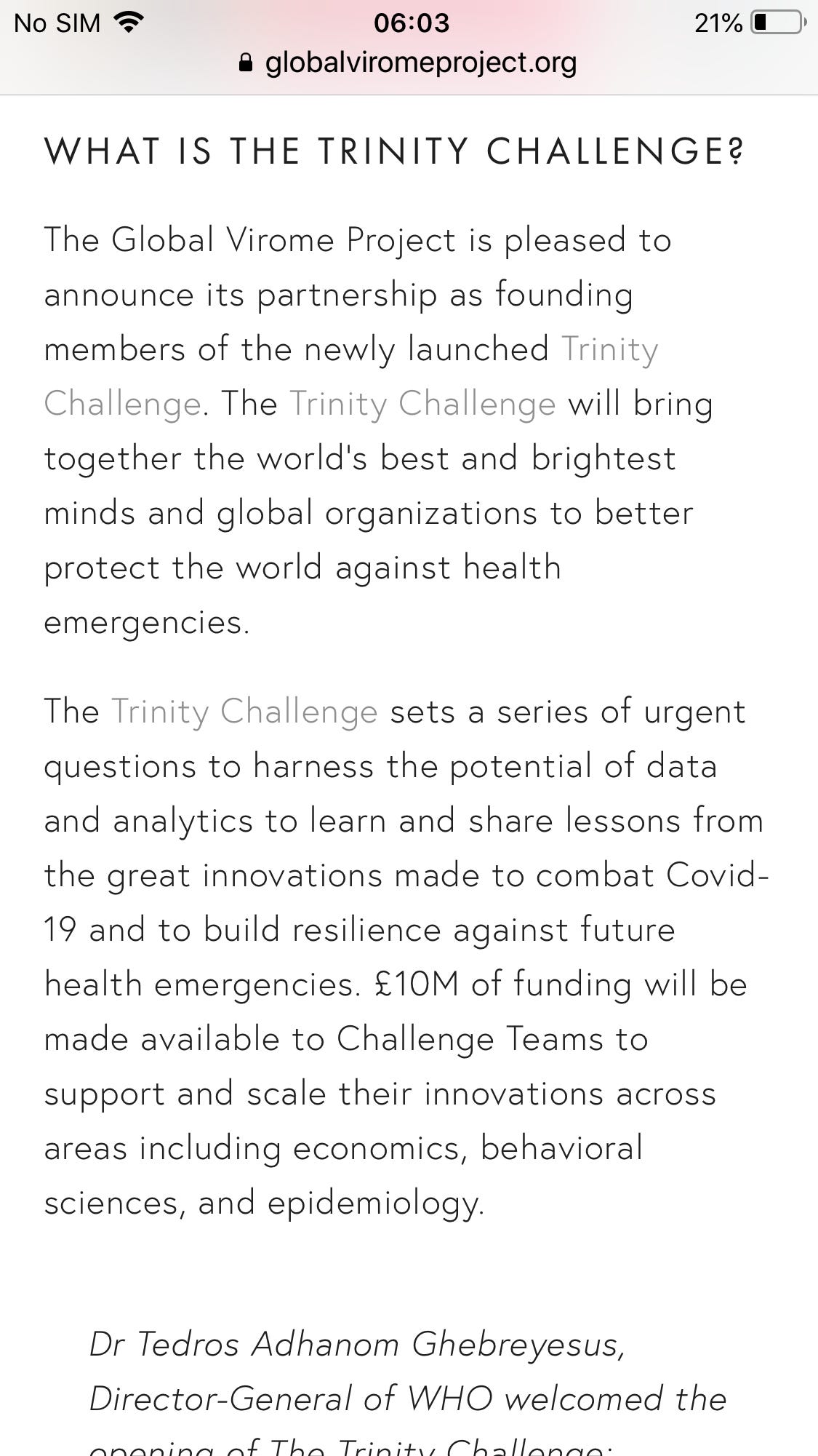 Its looks to me like the Global Virome Project and Trinity Challenge is a working arm of the WEF , US Govt agencies and BMG foundation (GAVI/WHO). All members of The Blob