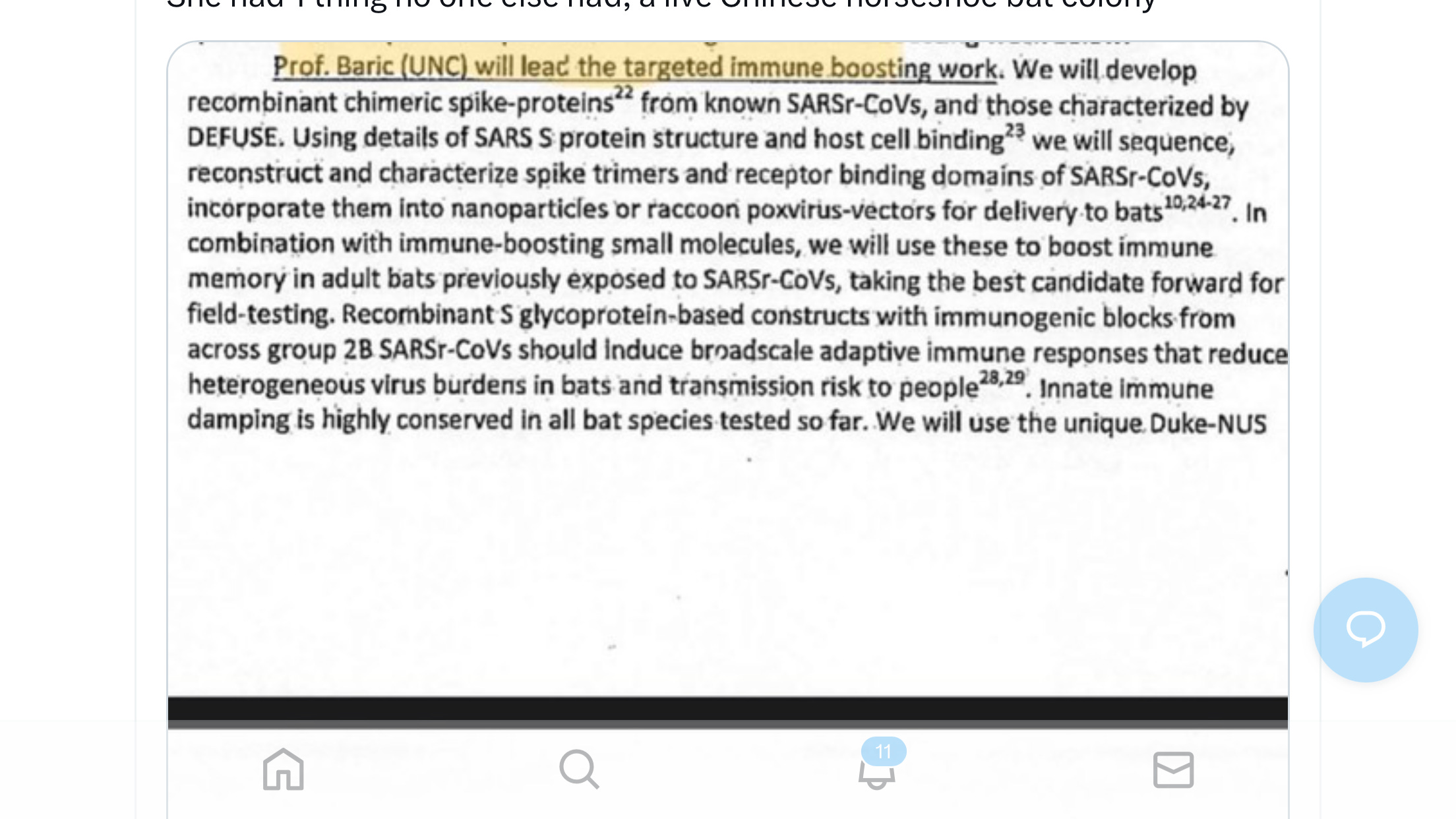 Major Murphy called the DARPA bat vax program a Manhattan project. I now see Baric Linfa and co as veterinarians with zoology degrees and bats as the new lab monkey.