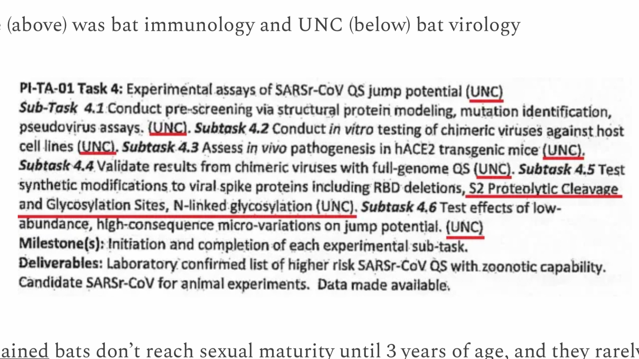 I am not going to bother much with the ridiculous natural origin hypothesis that has no evidence of an intermediate animal host in China, except to say this. If it was natural origin, given the outbreak happened in Wuhan it would probably have been from bat shit collected in caves far away and brought back to a lab. WIV has only managed to culture and isolate 3 of them over 10 years, and suddenly they manage to do so with the mother of all coronaviruses and then ooopsie?